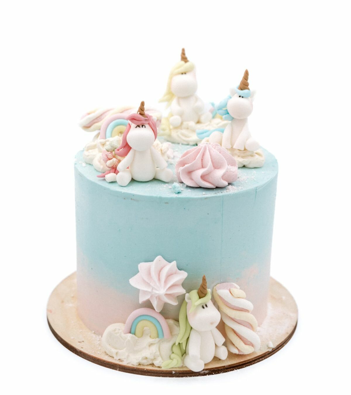Tak bajkowego tortu jeszcze nie widzieliście! Cztery wesołe jednorożce, tęcze, bezy, chmurki ? jednym słowem NIEBO i to nie tylko wizualne, lecz także smakowe! Taki właśnie jest tort urodzinowy dla dziewczynki MINI UNICORN z naszej oferty. Z pewnością wywoła uśmiech na twarzach wszystkich gości!