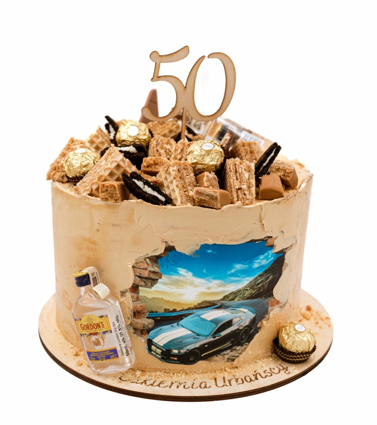 Tort MĘSKI nie mógł otrzymać od nas innej nazwy, ponieważ został stworzony z myślą o mężczyznach. Połączenie eleganckich słodkości, alkoholu i szybkich samochodów. To najlepsza propozycja na imprezę urodzinową dla mężczyzny w każdym wieku. Dodatkowo tort możemy wyposażyć w topper, który w stylowy sposób prezentuje liczbę skończonych lat ? bez konieczności umieszczania na torcie wielu świeczek.