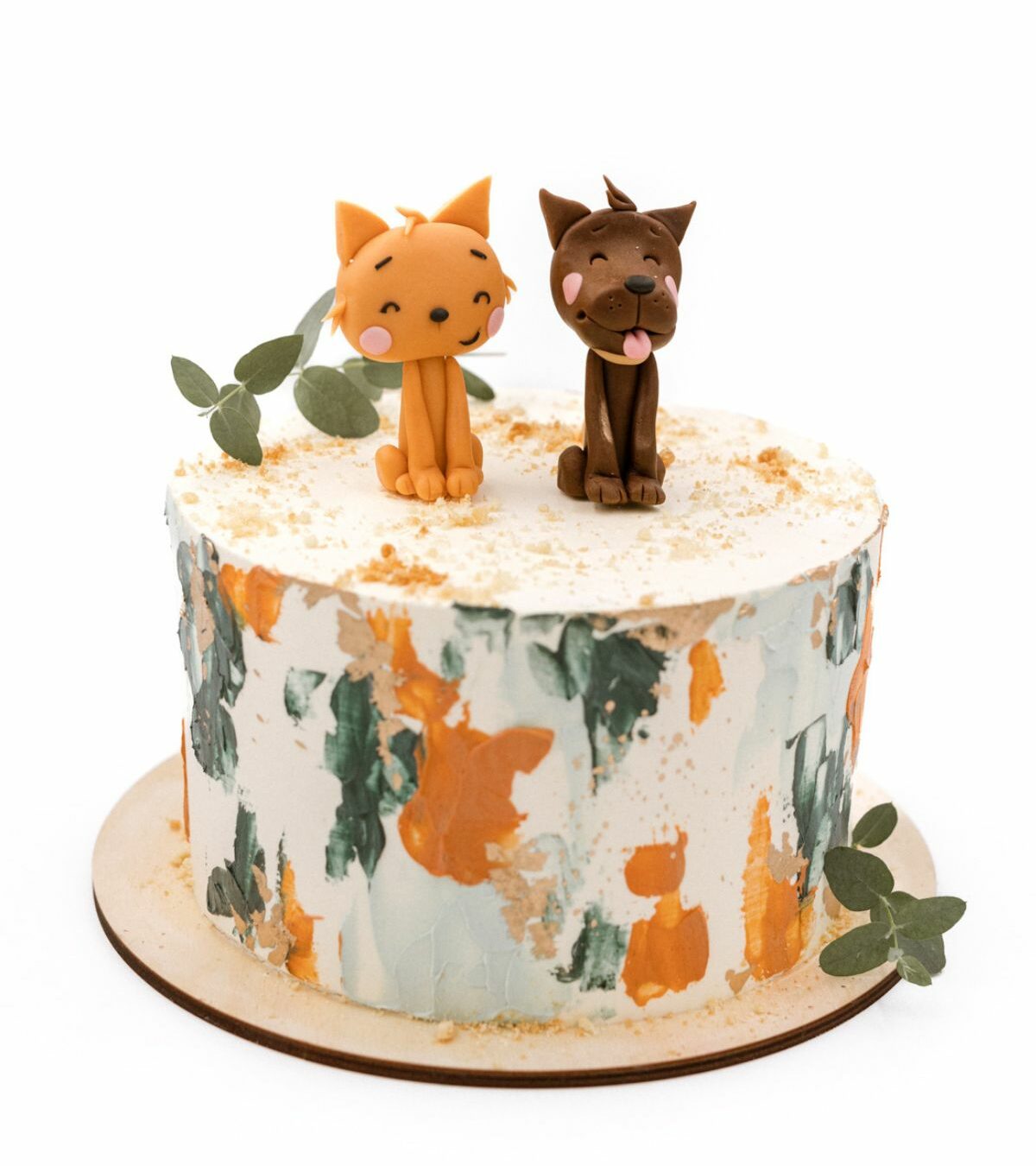 Tort FRIENDS zaprojektowaliśmy z myślą o chłopcach, choć tak naprawdę jest to motyw uniwersalny. Figurki przedstawiające psa i kota oddają charakter motywu przyjaciół. Ich uśmiechnięte pyszczki przypadną do gustu zarówno dzieciom, jak i dorosłym. Naturalna, stonowana kolorystyka tortu FRIENDS dodaje mu elegancji i wpisuje się w popularny styl Boho, który od niedawna przewodniczy wielu przyjęciom.